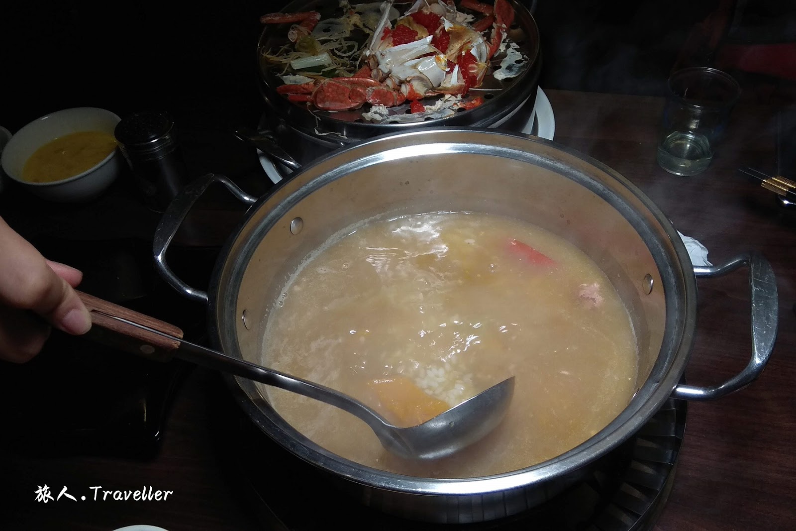 ⭕ 最後當然免不了來一個煮粥重頭戲,吃蒸氣火鍋時,最後千萬不能錯過煮粥的重頭戲。蒸氣火鍋煮粥,基本上是以蒸海鮮時流到最下方鍋中的海鮮原湯汁熬煮米飯,不加價的話,店員會在煮粥時加入雞蛋、蔥花等一同烹煮,關火前再輕灑少許胡椒提味,吃原味的粥最能夠由粥中品嚐到海鮮湯汁的鮮甜原味。但若希望有多一點變化時,也可以額外加購、加入食材一同烹煮,而煮出例如:鮮蝦粥、龍蝦粥、紅蟳粥…等,來一個夢幻奢侈的Ending,作為蒸氣火鍋完美的結局。