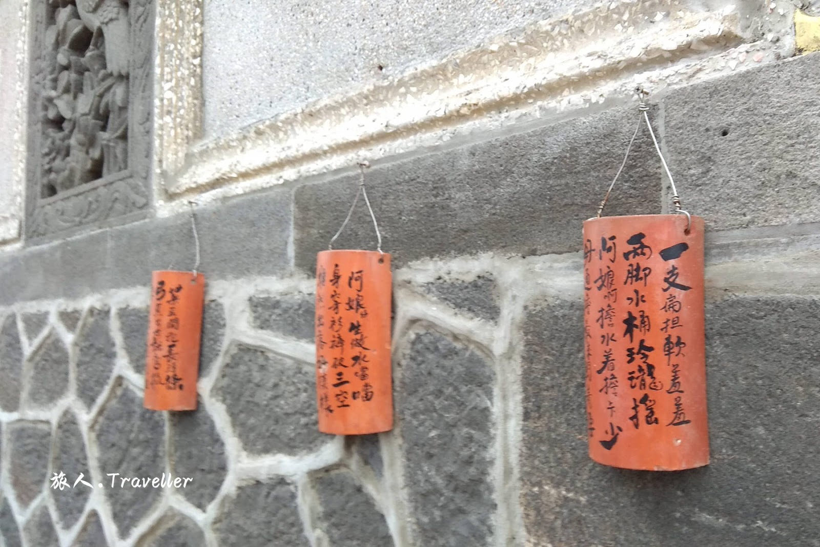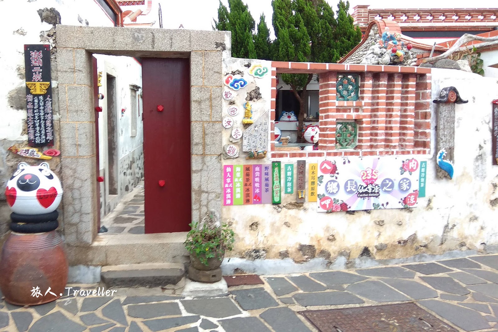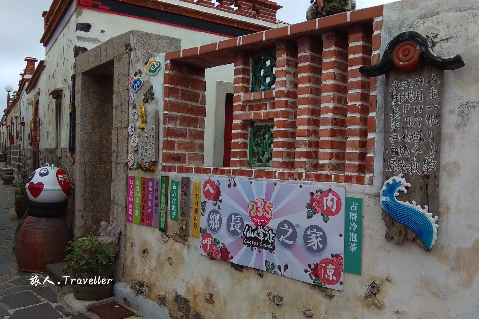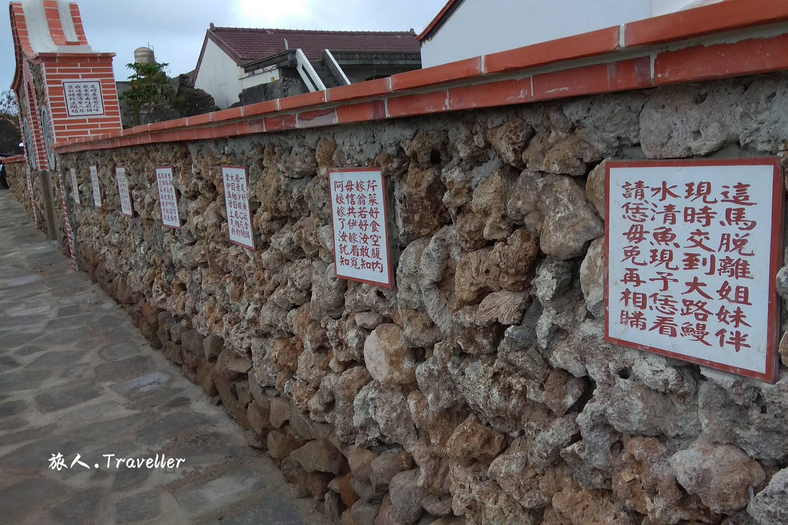 澎湖二崁聚落 Penghu Erkan Ancient Residences,二崁村座落在漁翁島東岸的ㄧ個小凹地中,聚落東西兩邊各有一高地,故稱二崁(崁是高地的意思)。二崁村於民國90年經內政部指定成為國內第一個傳統聚落保存區,並發展成為具有在地文化特色的各項小型展覽館。