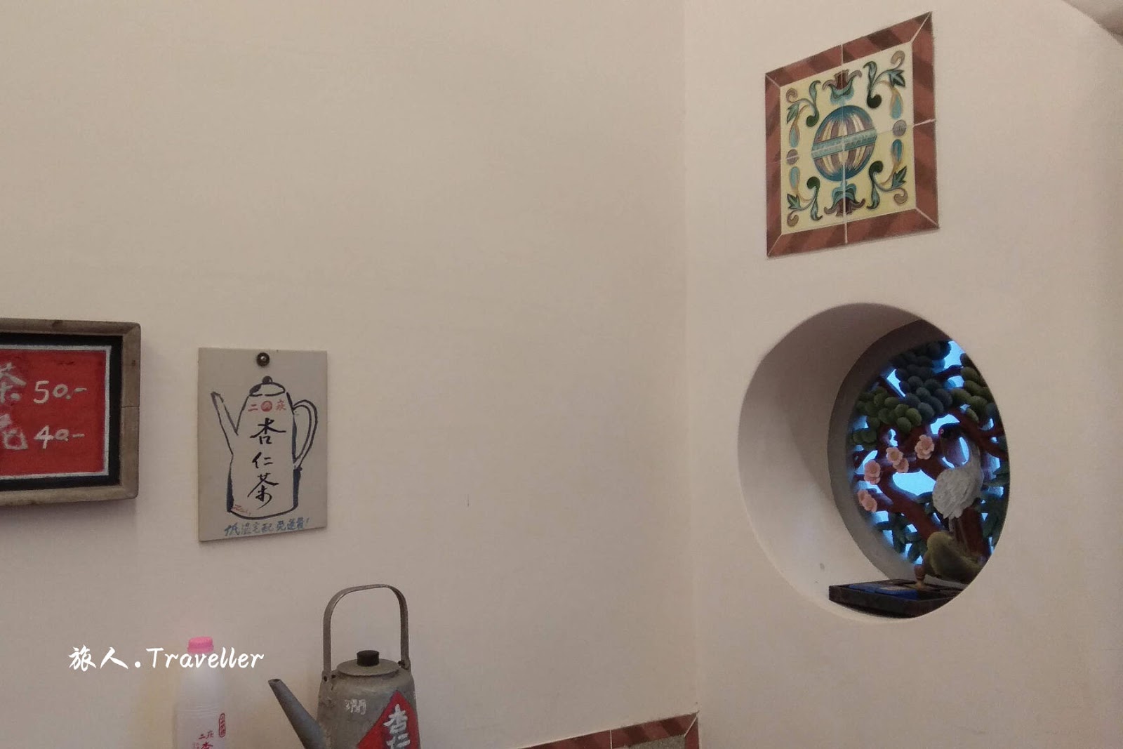 杏仁茶 Almond Tea NT $50,靠近杏仁茶館就能聞到撲鼻而來的濃郁杏仁香氣,二崁先民從事中藥材買賣,因此對於杏仁等藥材的知識豐富。店家挑選出品質佳的南杏(又稱甜杏,味甘甜,但較不具養身效果)、北杏(略帶微苦,但對身體比較養生),以古法將杏仁手工研磨製成杏仁茶,並以祖傳比例密方調配,經過熬煮後散發出天然的杏仁香,讓不少原本不敢喝杏仁茶的旅人嘗試過後因而愛上杏仁茶的滋味。