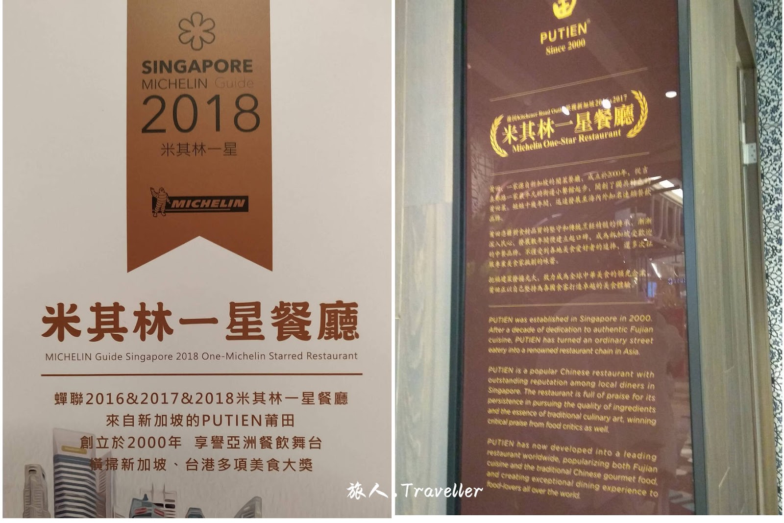 新加坡米其林(米芝蓮)指南一星食府Singapore The Michelin Guide Awarded 1 Star in 2016, 2017, 2018. 『PUTIEN莆田』被譽為新加坡中餐第一品牌,由2000年創立以來憑藉對食材與傳统烹飪精髓的傳承與堅持,莆田餐廳横掃新加坡、香港、上海各大美食獎項,目前已經在馬來西亞、印尼、台灣、香港、上海、北京等地開設數十家分店,莆田新加坡吉真那路老店更於2016~2018連續三年榮獲新加坡米其林一星美譽。