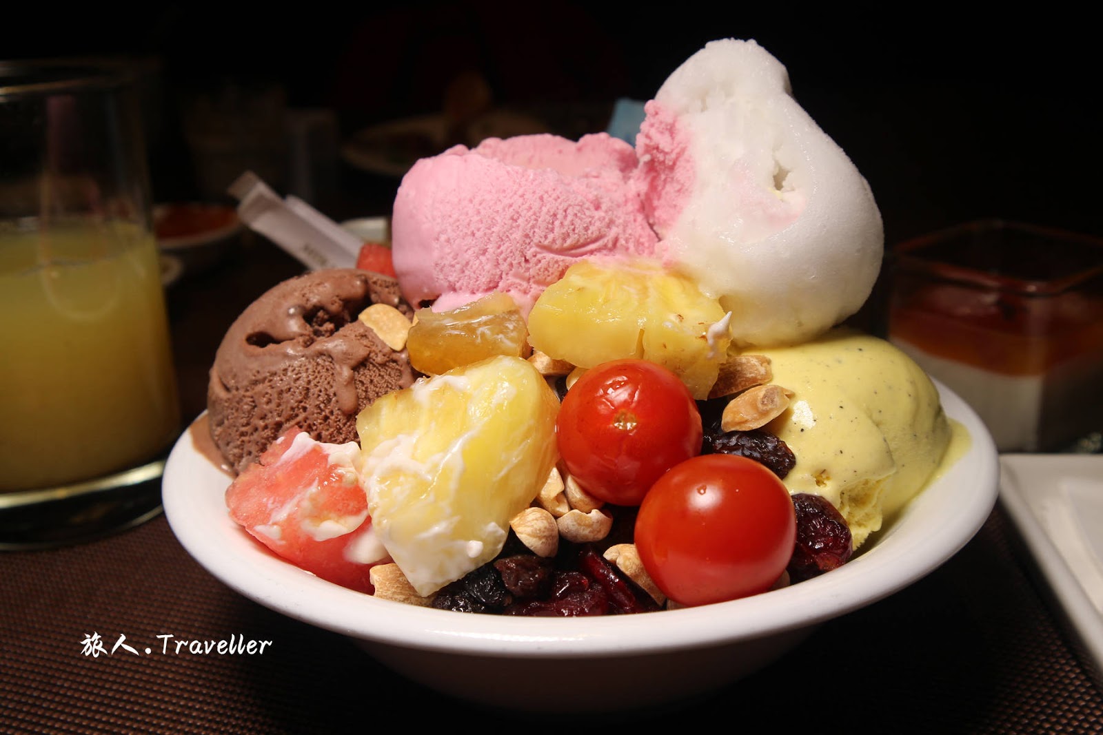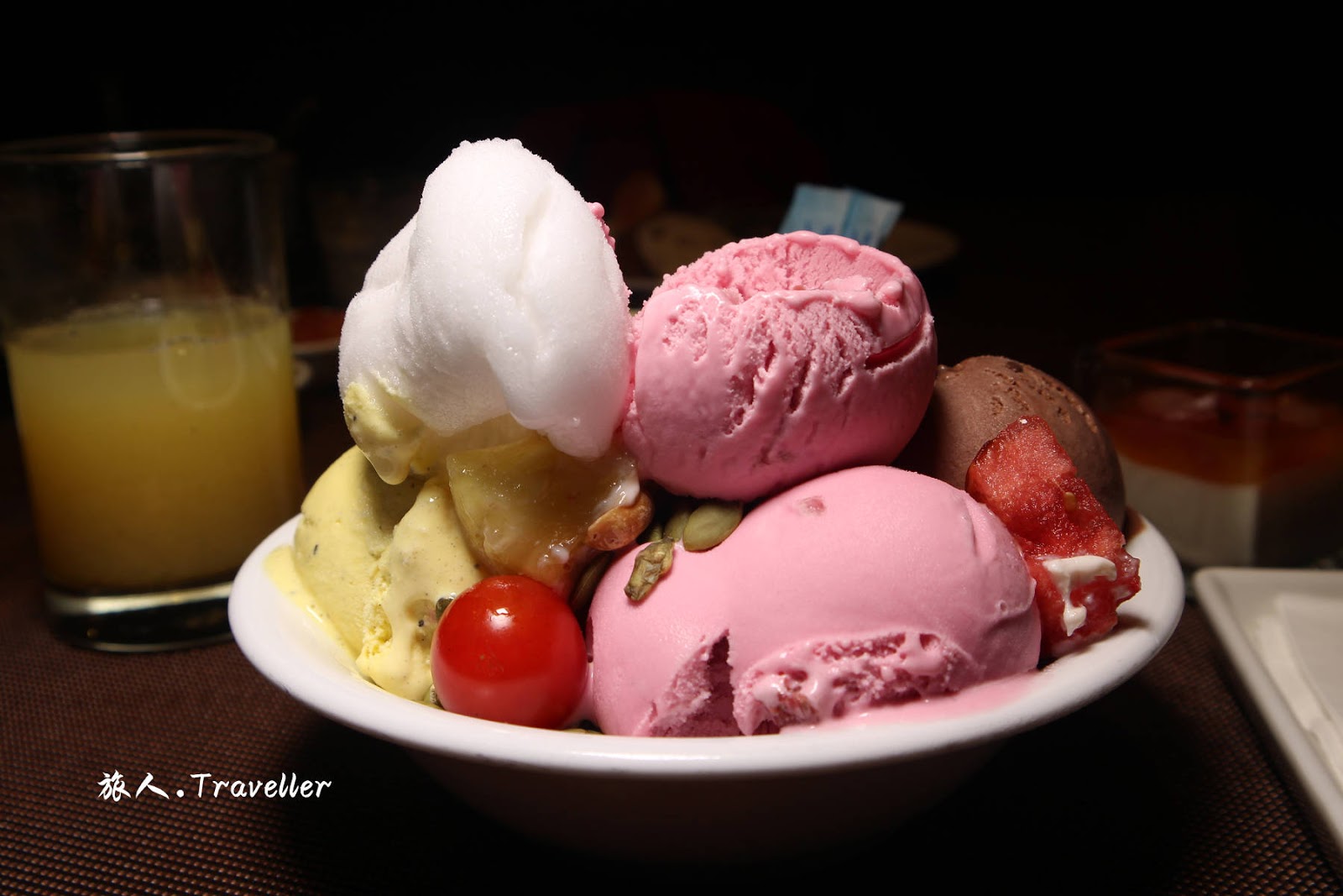 ⭕梅子芭樂幕斯,話梅去籽加入牛奶打成泥,加入新鮮芭樂打成的芭樂牛奶,再伴入鮮奶油成滑順幕斯,搭配椰子蛋糕,俏麗滋味在口中舞出一曲少女情懷夢幻甜品。