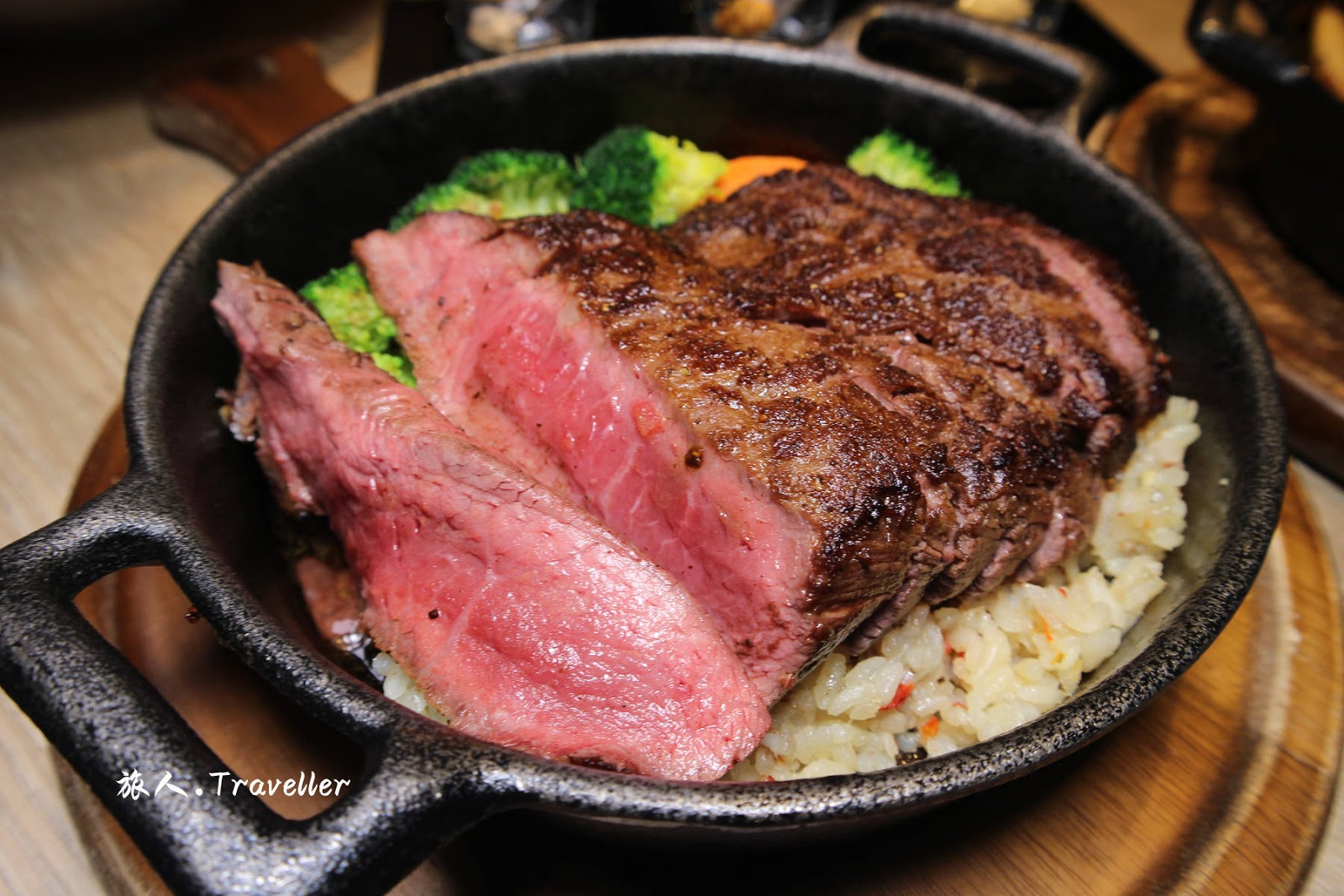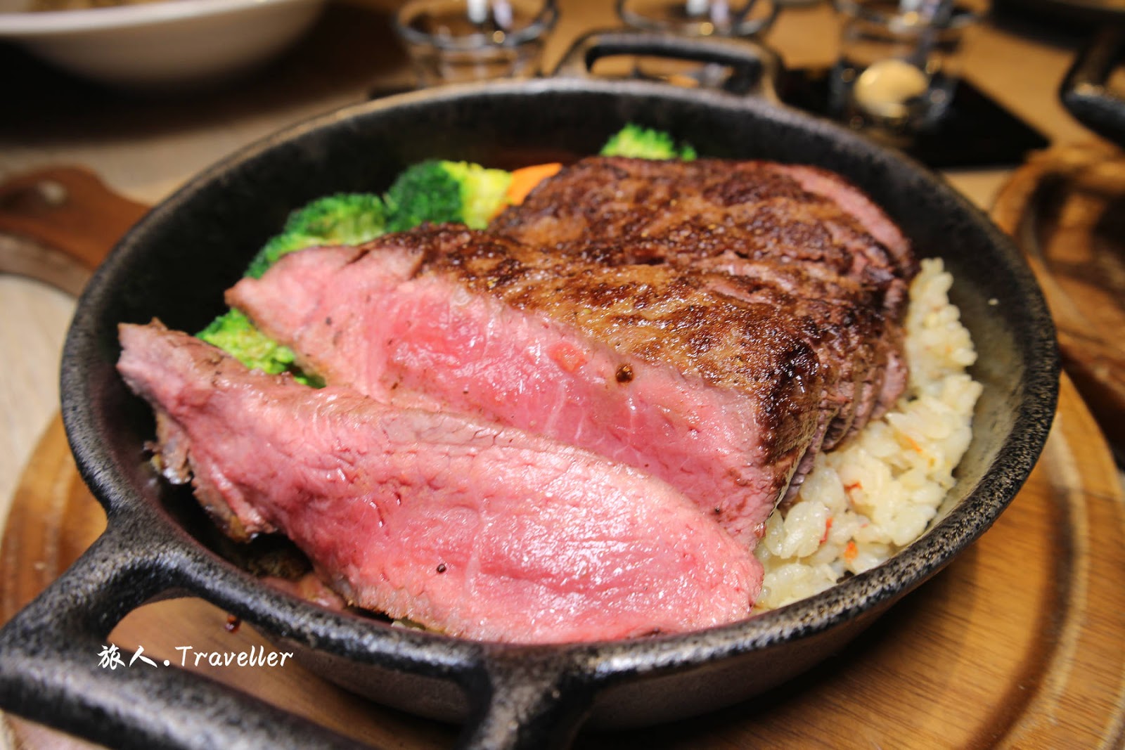 使用美國Choice等級新鮮冷藏牛肉,先去除筋膜後再以片燒方式料理與呈現。8盎司美國片燒嫩肩牛排只要480元、12盎司美國片燒嫩肩牛排690元,以美式牛排來說其價格頗為親民。這道美國片燒嫩肩牛排肉質軟嫩,風味頗佳,牛排底下並以風味飯襯底,整道料理品嚐後很具飽足感。
